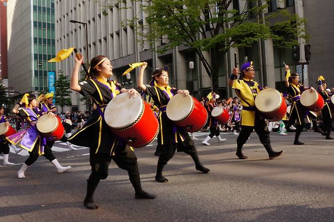 참가자들은 전통 복장과 화려한 의상을 입고 북을 치며 춤을 추는 돈타쿠 퍼레이드를 펼쳐서 눈길을 사로잡습니다. 퍼레이드 참여는 자유이기 때문에 관람객들도 누구나 즐겁게 축제에 참여할 수 있답니다.