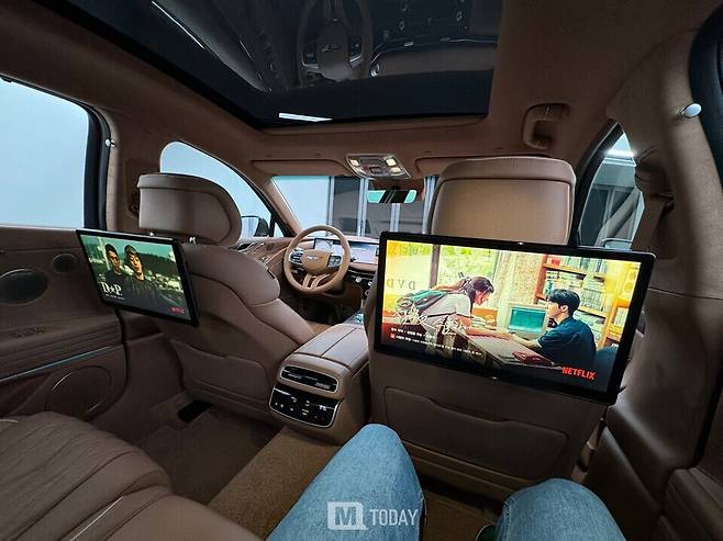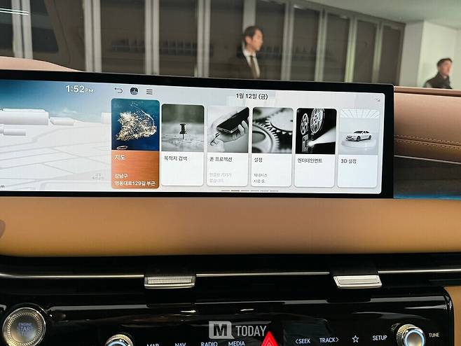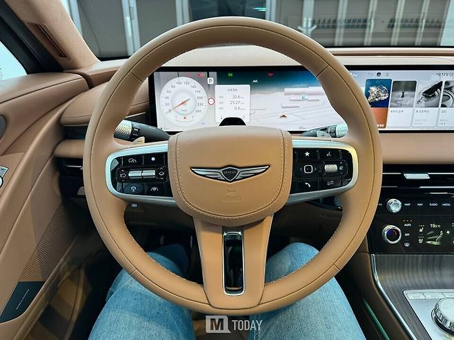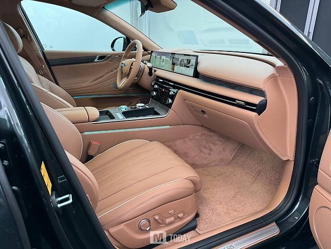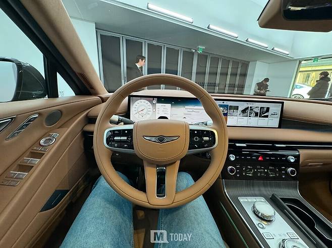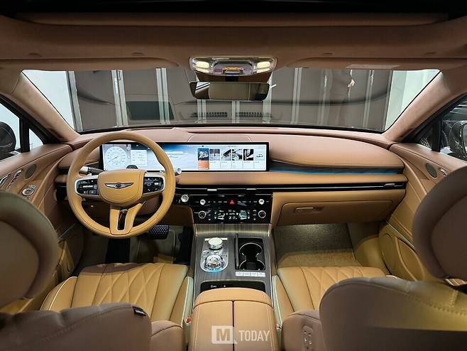 실내는 최신 3-스포크 디자인의 스티어링 휠이 새롭게 적용됐다. 또 수평형 레이아웃에 클러스터와 AVN 화면이 하나로 연결된 27인치 OLED 디스플레이 및 터치 타입 공조장치를 적용해 편의성을 강화하면서도 하이테크하고 세련된 이미지를 연출했다.