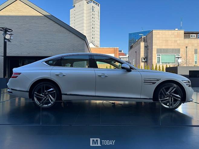 신형 G80는 제네시스 디자인 철학인 '역동적인 우아함(Athletic Elegance)'을 바탕으로 정교하고 화려한 디테일을 더해 더욱 완성도를 높인 것이 특징이다.
