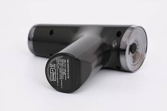 손잡이 부분 아래쪽의 본체 바닥 면에는 모델명과 간략한 사양 및 인증 정보 등이 담겨 있는 스티커가 부착되어 있다.
