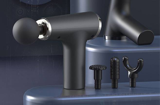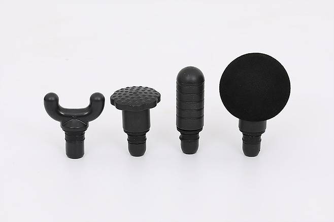 충전이 완료되었으면 이제 교체형 마사지 헤드를 선택해서 본체의 노즐에 삽입해주어야 한다. 교체형 마사지 헤드는 4종이 기본 제공되는데, 둥근 구형의 볼헤드와 손가락 모양의 단단한 핑거헤드, 소뿔처럼 두 개로 갈라진 U헤드, 납작하고 넓은 원판 형태의 라운드헤드 중에서 원하는 타입을 골라 사용하면 된다.