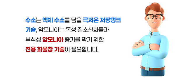 지금은 무탄소 친환경 연료 기반으로 옮겨가는 과도기에 있는 만큼 이에 대한 기술 개발이 끊임없이 이루어져 합니다. LNG·메탄올을 대체할 수 있는 연료로 현재 수소, 암모니아 등이 주목받고 있지만, 상용화하기 위해서는 앞으로 시간이 더 필요합니다.