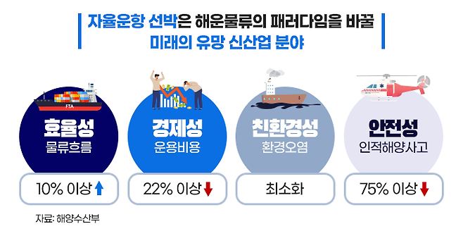 또한, 물류 흐름의 효율성을 10% 이상 개선할 수 있고, 환경오염 최소화, 인적 과실에 의한 해양 사고를 75% 이상 줄일 수 있어서 해운물류의 패러다임을 바꿀 미래의 유망 사업입니다.