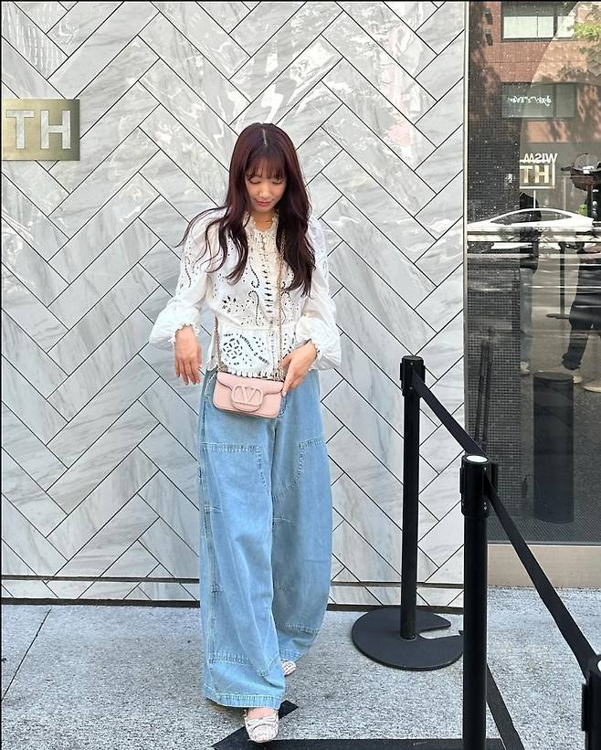 또, 박신혜는 와이드 청바지를 착용해 활기차고 스타일리시한 분위기를 자랑했습니다.