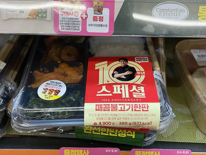 2025년 3월 '백종원 10주년 동행 프로젝트'를 통해 다양한 메뉴의 간편식 10종을 순차적으로 선보이는데 편의점에 진열된 7종을 먼저 소개해드릴게요.