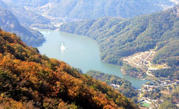 포천을 대표하는 관광지 산정호수입니다. 서울에서 약 1시간 30분 거리에 위치해있어 당일치기 포천 가볼만한 곳으로도 추천하는 여행지인데요. 호수 가장자리에 조성된 약 3.2km의 나무 산책로 산정호수 둘레길은 마치 호수 물 위를 걷는 듯 특별한 경험을 선사헙나다,