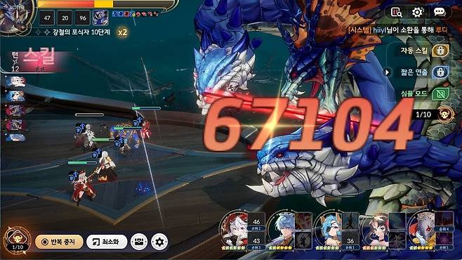 스킬 순서 등 10단계 클리어 운영법파스칼 스킬 2번이 핵심, 루시의 신내림도 활용 가능 강철의 포식자 10단계는 8~9단계와 동일한 진행 방식을 따른다. 빅토리아와 아수라의 버프/디버프 지속 시간 내에 ‘파괴의 거인’을 2회 사용하는 것이 핵심이다. 앞서 언급한 것처럼, 파스칼의 ‘파괴의 거인’이 6.5만 대미지를 낼 수 있다면 높은 확률로 클리어가 가능하다. 이보다 낮을 경우에는, 두 번 중 한 번 정도 약점 공격이 터지기를 기대해야 한다.