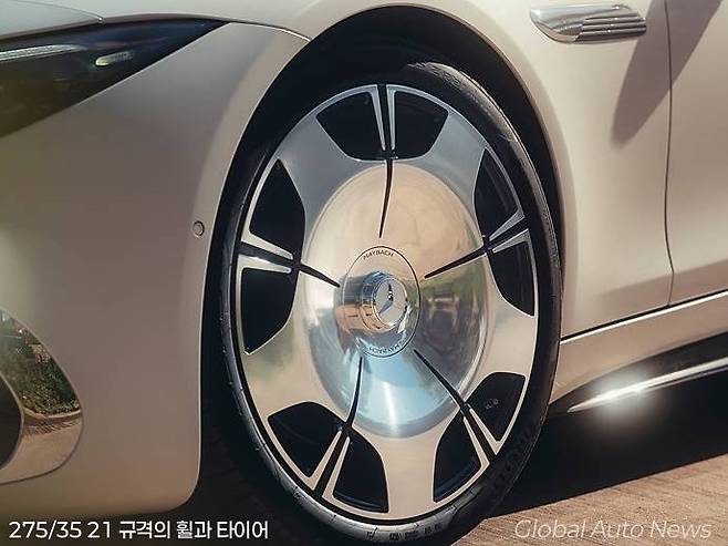 그리고 휠 디자인도 마이바흐 세단과 같은 이미지의 넓은 접시 디자인으로 바뀌었습니다. 휠과 타이어 규격은 앞 바퀴가 275/35 21 규격으로 보입니다. 마이바흐 세단이 20인치 규격인 것에 비하면 더 커진 것입니다. 뒤바퀴는 285/30 21 정도일 걸로 보입니다.