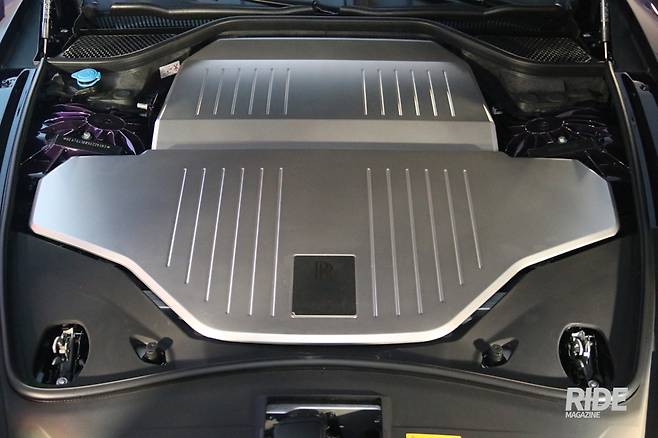 전반적인 외관은 보랏빛의 신규 색상인 베이퍼 바이올렛을 입혔고, 여기에 아이스트 블랙 보닛이 대조적이면서도 묘하게 조화를 이루는 모습이다. 외관에서는 롤스로이스의 상징이라 할 수 있는 환희의 여신상에 가장 먼저 눈길이 가는데, 블랙 배지라는 이름에 걸맞게 어두운 색으로 마감해 은근한 존재감을 보여준다. 그 아래로 웅장함을 더하는 판테온 그릴 역시 어두운 색으로 처리했다. 이 그릴을 더욱 돋보이게 하는 일루미네이티드 그릴 백플레이트를 새로 추가했는데, 다양한 컬러로 제공되어 소유자의 취향대로 선택할 수 있다. 차량의 크기는 전장 5,490mm, 전폭 2,015mm, 전고 1,575mm에 휠베이스 3,210mm, 무게 2,900kg이다.