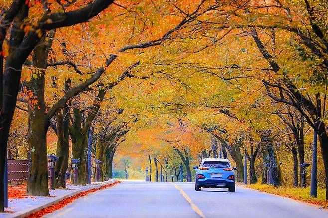 가을이 되면 알록달록한 단풍으로 물들여져 환상적인 추경을 즐기며 드라이브할 수 있어 데이트 코스로도 사랑받는 장소입니다.