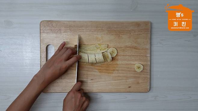 바나나를 먹기 좋은 크기로