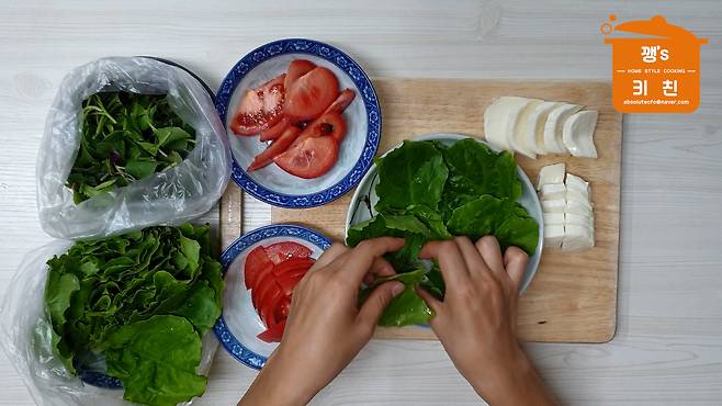 4. 샐러드 채소들 준비해서 접시에 담기