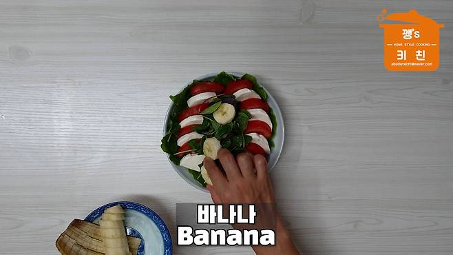 6. 샐러드용 채소 올리고 바나나 올리기