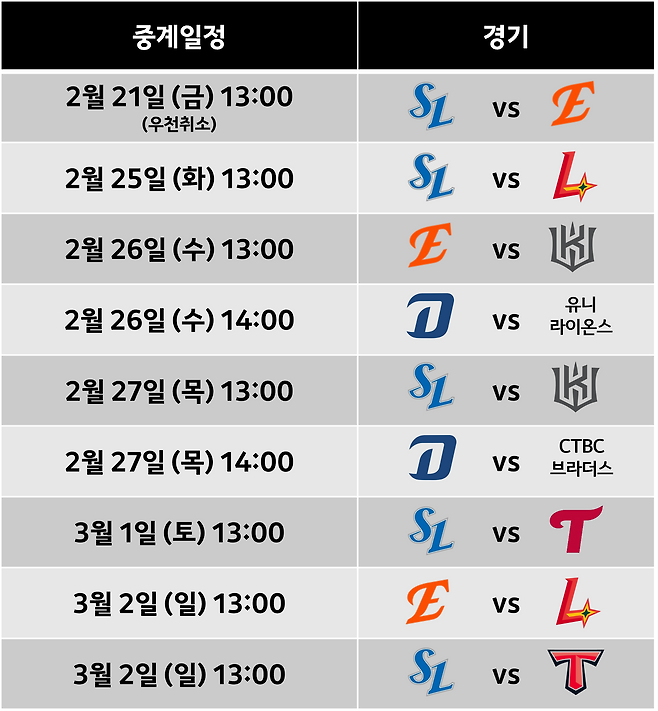 삼성라이온즈, 한화이글스, NC 다이노스 연습경기 Daum스포츠 생중계 일정입니다. 생중계 일정은 현지상황에 따라 변동될 수 있는 점 참고해주세요!