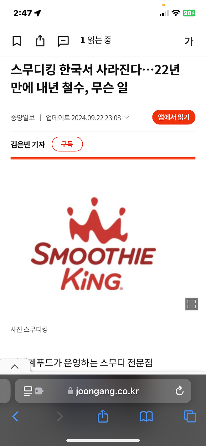 신세계푸드가 운영하는 스무디 전문점 '스무디킹'이 내년 10월 한국에서 철수하기로 했다.