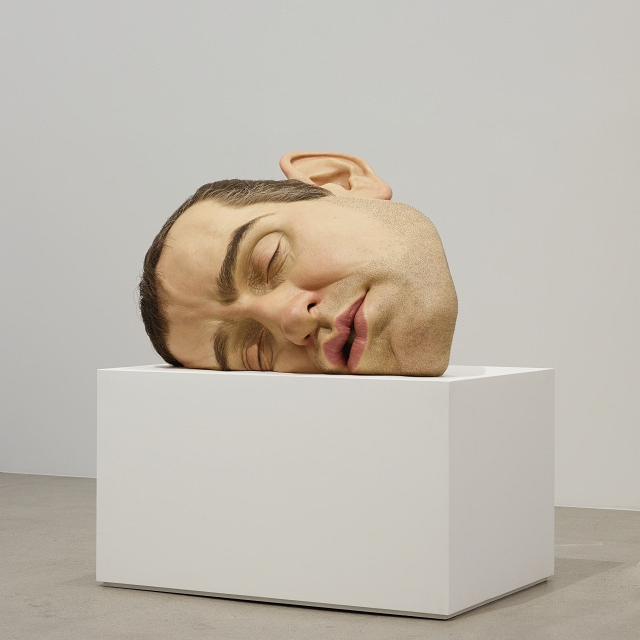 뮤익은 피부 힘줄과 작은 주름까지도 묘사하는 하이퍼리얼리즘(극사실주의) 조각가입니다. 놀랍도록 정교한 조각적 테크닉과 작품 크기를 실제 인체보다 과장되게 크거나 작게 표현하는 것으로 유명합니다. 이번 전시의 문을 여는 작품 ‘마스크 II(2002)’는 실제 인간 얼굴의 네 배 크기로 초입부터 관람객을 압도합니다. 작가는 잠든 자신의 얼굴을 확대해 볼 모공과 턱수염 한 올까지 구현해냈습니다. 조각 앞면은 바닥에 뺨을 기댄 채 눈을 감은 모습인 반면 뒷면은 텅 비어 있습니다. 진짜처럼 보이던 남성의 얼굴이 작품 이름처럼 가면에 불과하다는 것을 깨닫는 순간입니다.