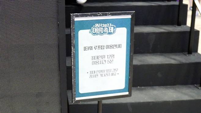 중간에 있는 루프탑에서는 계속 원신 PV가 재생됐으며, 중간중간 기다리는 유저들이 지루하지 않도록 퀴즈를 내거나 럭키 드로우를 진행했습니다.