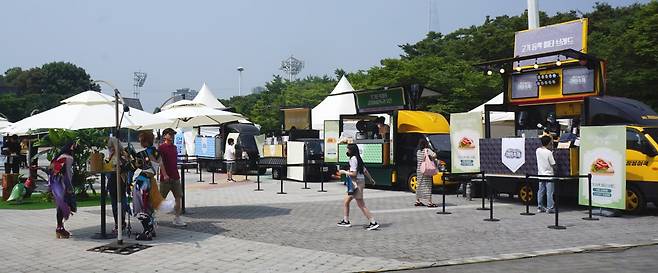 푸드트럭존을 돌아가면 현장 이벤트가 진행 중입니다.