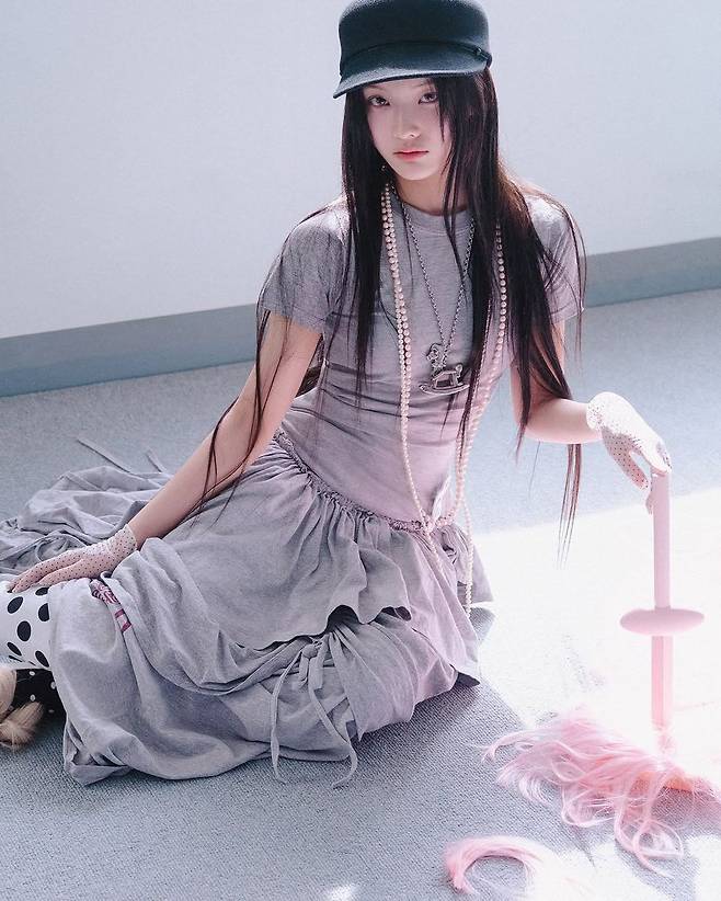 아일릿 이로하가 인스타그램에 공개한 화보 속 스타일링이 팬들의 이목을 끌고 있다. 차분한 회색 배경과 부드러운 채광 속에서 앉아 포즈를 취한 그녀는, 인형 같은 분위기를 자아내며 몽환적인 Y2K 룩을 완성했다.