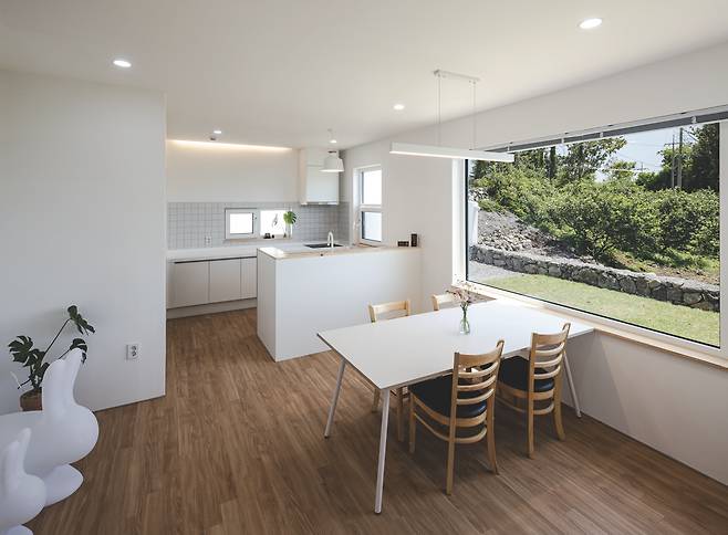 건축가는 설계에 앞서 크게 세 가지 틀을 세웠다. 첫째, 귤 밭과 잘 어우러지는 건물일 것. 둘째, 게스트하우스와 주인집의 사생활이 독립적일 것. 셋째 주인집과 게스트하우스가 적절한 관계를 유지하는 것이다.