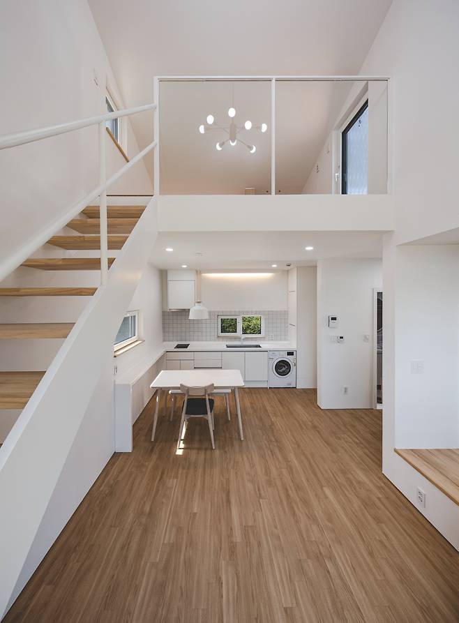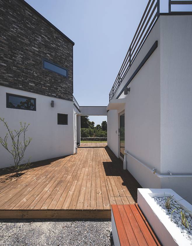 공간 나눔에 의해 독특한 형태를 띠는 모습도 재미나다. 언뜻 보면 한 건물 같지만, 자세히 안을 들여다보면 건축주 가족의 주거 공간과 게스트하우스가 사이마당을 두고 분리됐다. 사이마당은 주인집과 게스트하우스 손님이 함께 공유하는 장소로, 소음을 차단하고 프라이버시를 지키면서 적절한 유대감이 흐르도록 돕는다.