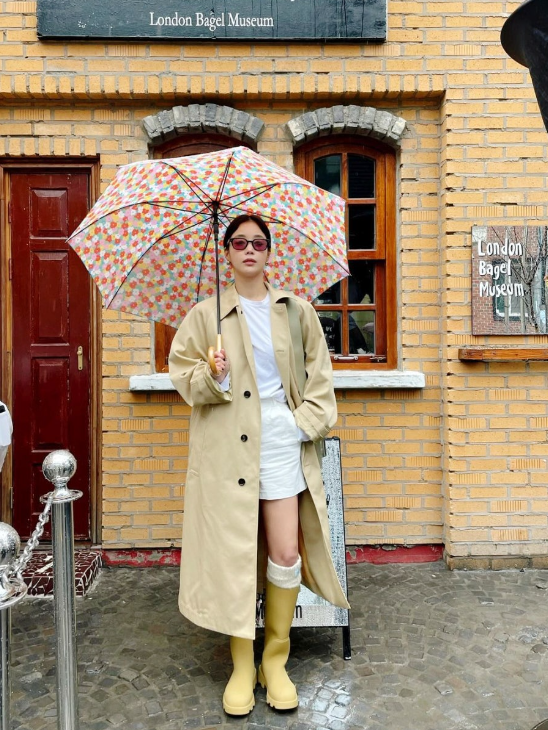 아담하기만 한 레인부츠가 질린다면 버버리의 레인부츠를 추천한다. 기은세(@kieunse)의 피드에도 등장했던 부츠이다. 기은세는 트렌치코트와 함께 코디하였다. 너무 확 튀지 않고 적절한 채도를 가져 찰떡이다. 영국의 신사숙녀의 감성에 귀여운 포인트를 추가하고 싶다면 버버리의 레인부츠를 추천한다. 약 75만원