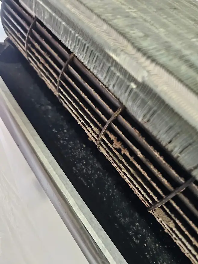 에어컨 내부의 열교환기와 팬은 냉방 과정에서 응결수가 지속적으로 발생하며 항상 습기가 차 있는 상태입니다. 이 습기와 먼지가 만나면 곰팡이와 세균의 번식이 빠르게 이루어집니다.