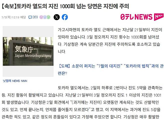 지난달 21일부터 오늘 정오까지 난 지진이 1000회를 넘어버림