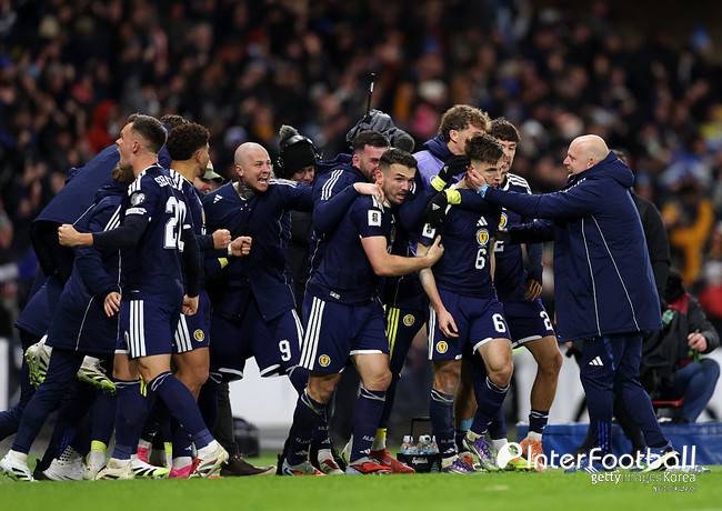 스코틀랜드는 19일(이하 한국시간) 스코틀랜드 글래스고의 햄던 파크에서 열린 2026 국제축구연맹(FIFA) 북중미 월드컵 유럽 예선 조별리그 C조 6차전 최종전에서 덴마크에 4-2 승리를 거뒀다. 경기 전까지 2위였던 스코틀랜드는 이날 승리로 6경기 4승 1무 1패(승점 13점)를 기록, 덴마크(승점 11점)를 제치고 조 1위로 월드컵 본선행을 확정지었다.