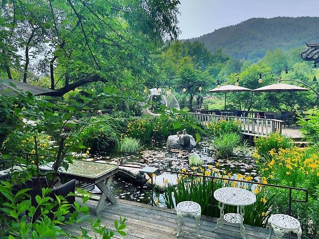 경남 거창군 북상면에 위치한 '민들레울'은 남덕유산 월성계곡의 자연 풍경 속에서 여유로운 시간을 보낼 수 있는 힐링 카페다.