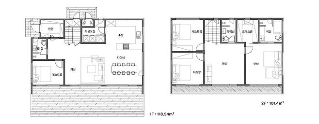 건축면적 : 주택 – 110.94㎡(33.55평) / 주차장 –70㎡(21.17평)