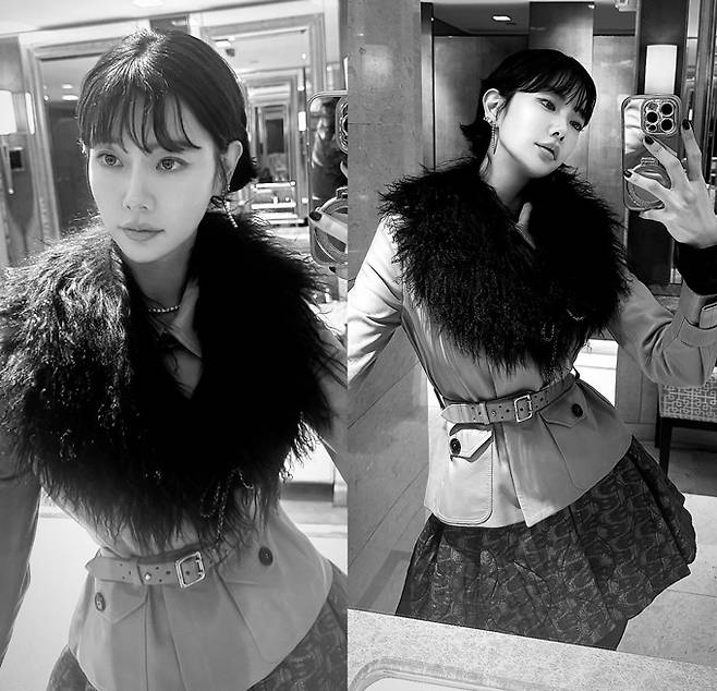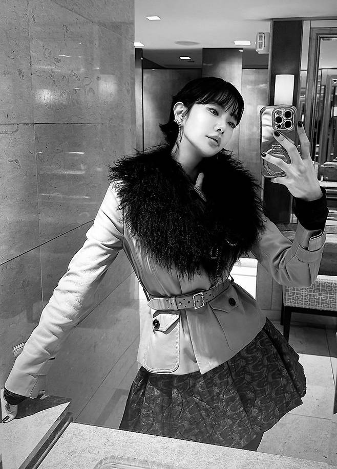 공개한 사진에서 클라라는 잘록한 개미허리 돋보이는 벨티드 재킷에 플리츠 미니 스커트를 입고 퍼 목도리를 매치한 외출룩으로 초슬림 마네킹 비주얼을 과시했다.