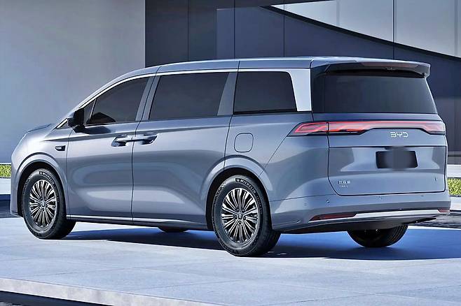 후면에는 단일 테일램프를 발견할 수 있으며 BYD 엠블럼이 위치하고 있는 것 역시 확인 가능하다. BYD 샤의 B필러와 C필러는 검은색으로 마감되어 있으며 뒷좌석 슬라이딩 도어도 존재한다. 샤의 실내 구성은 2열에 캡틴 시트 두 개를 갖춘 2+2+3 구조다. 넉넉한 실내 구조 덕분에 패밀리카나 캠핑 등 다양한 상황에 적절하게 쓰일 수 있을 것으로 보이는 부분이다.