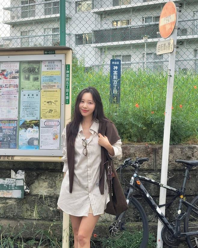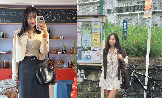 일본 거리에서 포착된 이솔이는 화이트 스트라이프 셔츠 원피스에 브라운 베스트를 매치해 캐주얼하면서도 트렌디한 스타일을 선보이고 있다. 가볍게 걸친 베스트는 봄철 외출에 적합한 센스를 보여주며, 편안하면서도 스타일리시한 여행룩을 완성했다. 선글라스를 목에 걸어 여유로운 분위기를 더했으며, 브라운 숄더백으로 전체적인 컬러 밸런스를 맞추고 있다.