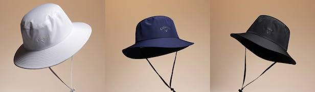 캘러웨이 버킷햇은 챙이 넓고 길어서 자외선으로부터 피부를 보호해주는 버킷햇입니다. 턱까지 가려줘 일반 골프캡보다 자외선 차단 범위기 넓습니다. 화이트, 블랙, 네이비 3가지 색상이 있습니다.
