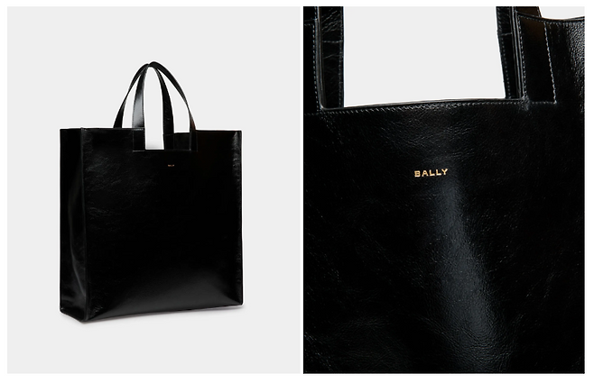 레더 소재의 블랙 컬러와 각 잡힌 직사각형 셰입의 토트백으로 남자 출근룩이나 비즈니스 룩에 매치한다면 정말 깔끔하게 룩을 마무리할 수 있을 것 같아요!