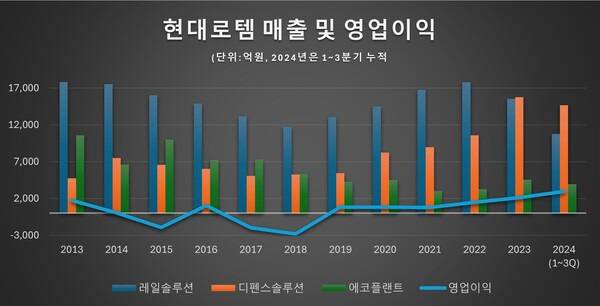 폴란드 수출로 현대로템의 기업가치와 재무건전성은 크게 제고됐다. 폴란드 계약 전인 2021년과 지난해 말 매출 및 영업이익을 비교하면 영업이익은 800억원에서 2100억원으로 161.8% 급증했고 매출은 2조8725억원에서 3조5874억원으로 24.9% 늘었다. 또 30%를 웃돌던 차입금의존도는 2022년 24%, 2023년 11%, 지난해 3분기 7%로 떨어졌다. 방산부문의 높은 수익률로 철도부문의 부진을 메웠다.