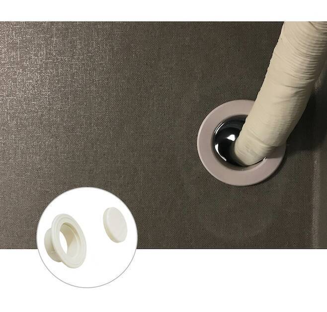 그 중에서도 아래처럼 벽에 끼우는 부분과 뚜껑으로 이루어진 제품을 구매해야 해요. 벽에 붙는 부분만 설치하고 쓰면 내 배관보다 너무 큰 구멍을 좁히고 깔끔하게 쓸 수 있답니다!