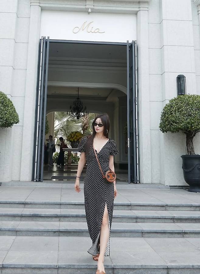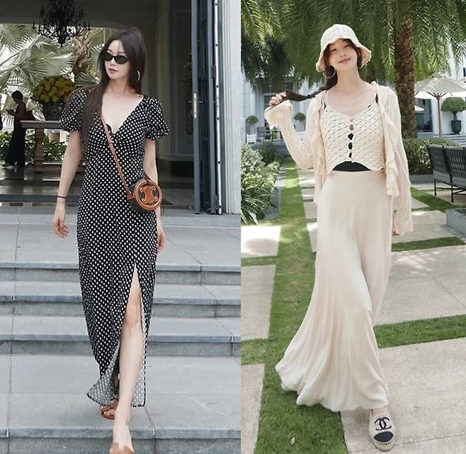 공개한 사진에서 남규리는 옆트임이 있는 땡땡이 블랙 원피스와 아이보리 컬러의 긴 주름치마와 베스트, 카디건 셋업의 리조트룩으로 여성미를 한껏 드러냈다.