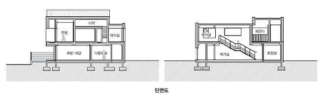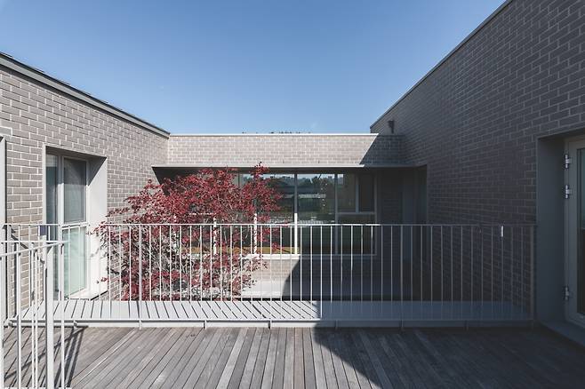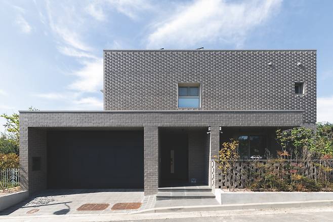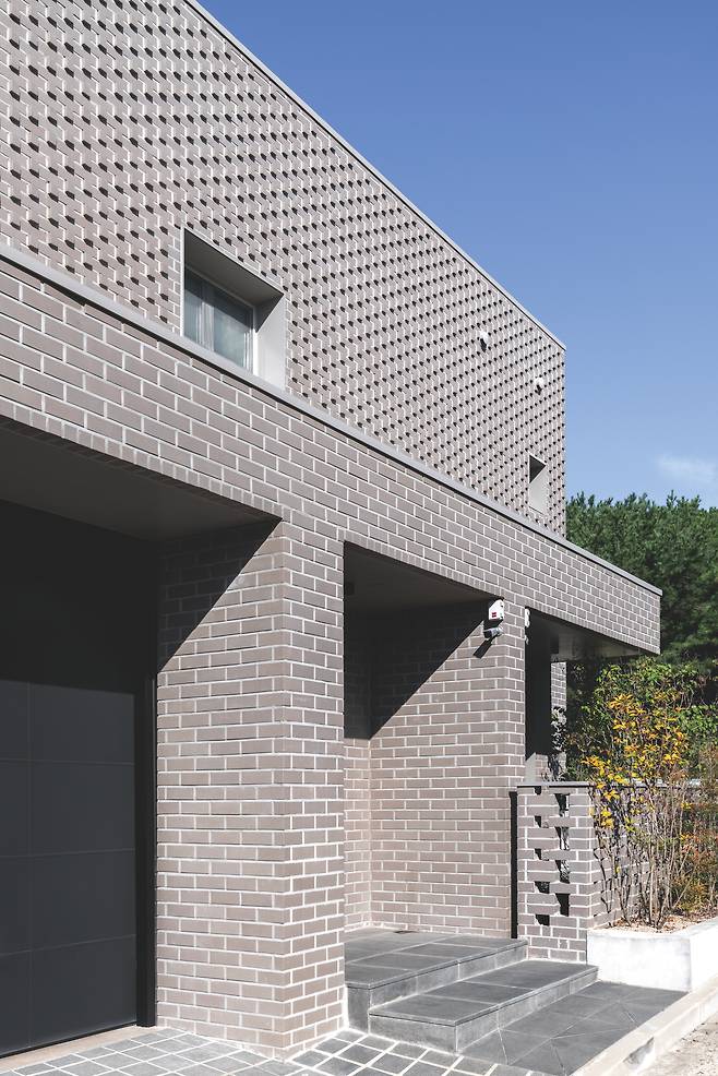 주택은 2층 테라스를 기준으로 두 개의 매스가 두드러진다. 각각 외경사지붕과 평지붕을 적용해 그 차이가 더욱 극대화된다. 경사지붕의 형태를 살려 부부방 위쪽은 다락으로 활용했는데, 이는 짐을 수납함으로써 내부를 쾌적하게 정리하기 위한 건축주의 특별 요구사항이다. 이로써 형태와 패턴(벽돌쌓기)으로 단출하면서도 존재감 있는 주택의 인상이 완성됐다. 이곳에서 자연과 가까이, 가족의 돈독함을 지킬 수 있는 건축주의 주택생활을 기대한다.