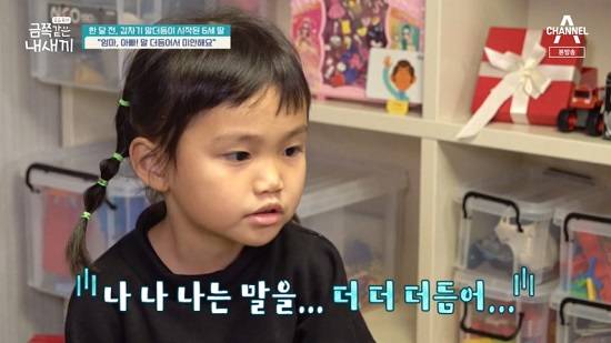 금쪽이는 '엄마 아빠에게 하고싶은 말이 있냐'는 질문에 "있다. 제가 말을 더듬어서 미안하다"며 더듬는 말로 진심을 전했다.