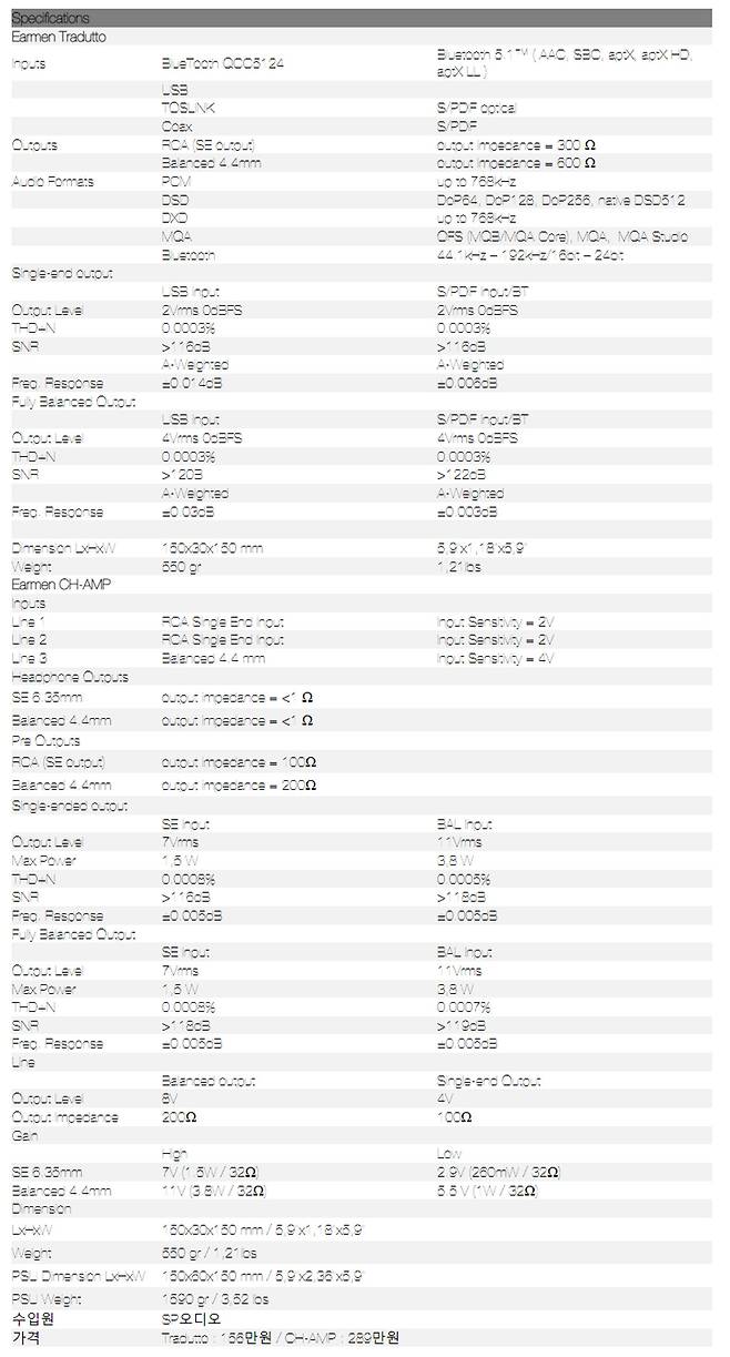 Earmen Tradutto DAC과 CH-AMP를 들어본 소감을 요약해보면 다음과 같다.