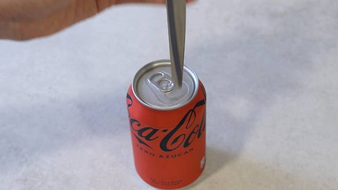 캔음료를 마실 때 간혹 캔따개가 부러져서 사용하지 못할 때가 있는데요. 이것을 열려고 송곳, 가위 등 날카로운 것으로 열려고 하시는 분들이 있어요. 이제는 절대로 이렇게 위험한 것으로 캔을 열지 마세요.