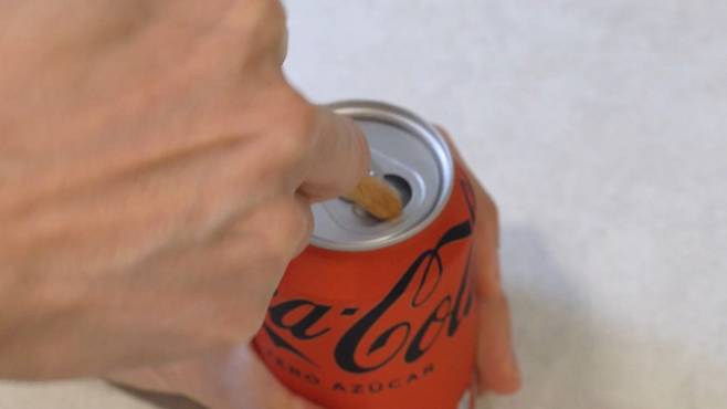 캔 뚜껑을 열기 위해서 필요한 것은 단 하나! 바로 젓가락입니다. 나무젓가락 하나만 있으면 아주 쉽게 캔을 열 수 있어요.
