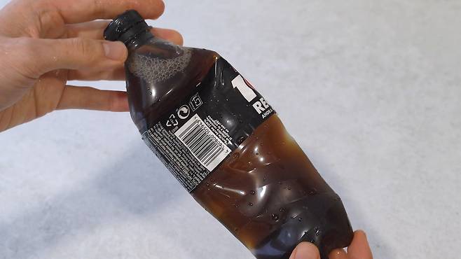 탄산이 빠지는 원리는 페트병 속 빈 공간으로 이산화탄소가 빠지며 김이 빠지게 되는데요. 이때 빈 공간을 최소로 하면 김이 빠지는 것을 어느 정도 방지할 수 있어요.