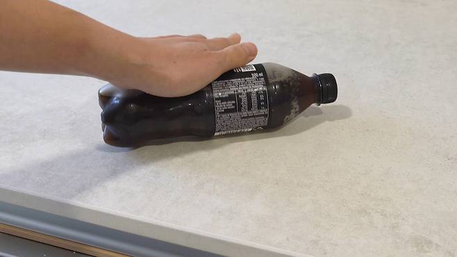 먼저 남은 음료 페트병의 빈 공간이 없을 정도로 꽉 눌러 주세요. 그리고 바로 뚜껑을 꼭 닫아 차가운 온도의 냉장고에 보관하세요.