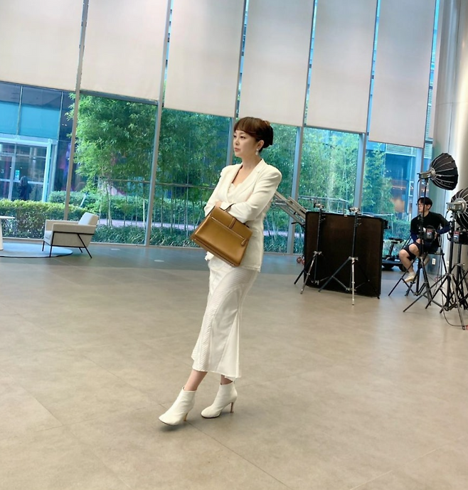 화이트 수트 투피스와 올림머리 조합은멀리서 봐도 단정하고 프로페셔널한 인상을 줍니다.