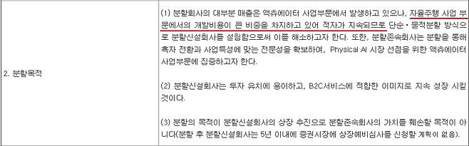 20일 금융감독원 전자공시시스템에 따르면 로보티즈는 자율주행로봇 사업을 분리해 신설회사 ‘로보이츠(가칭)’를 설립하는 물적분할을 추진한다. 존속회사인 로보티즈는 분할대상 부문을 제외한 모든 사업을 그대로 가져간다. 분할기일은 6월1일이다. 이번 분할은 자율주행로봇 사업의 개발비용에 따른 적자 문제를 해소하기 위한 목적이라고 명시됐다.