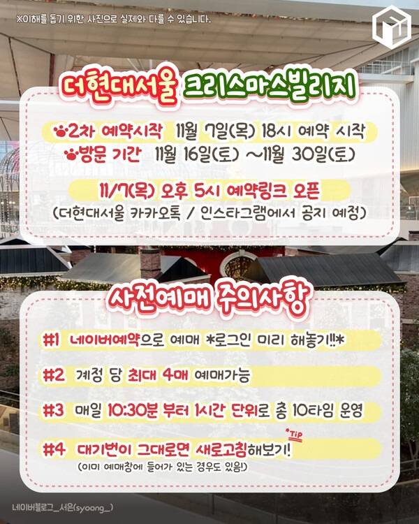 오늘 여행톡톡은 2024 더현대 서울 크리스마스 빌리지 예약 시간과 가격, 2차 예약 오픈일정은 물론 현장 웨이팅 꿀팁과 예약 팁까지 모든 것을 총정리해 소개합니다. 치열한 티켓팅이 예상되는만큼 2024 더현대 크리스마스 2차 예약 전 이 글을 꼼꼼하게 읽으셔서 모두 예약에 성공하시길 바랍니다.