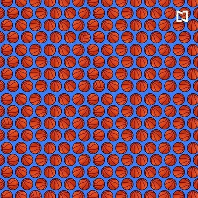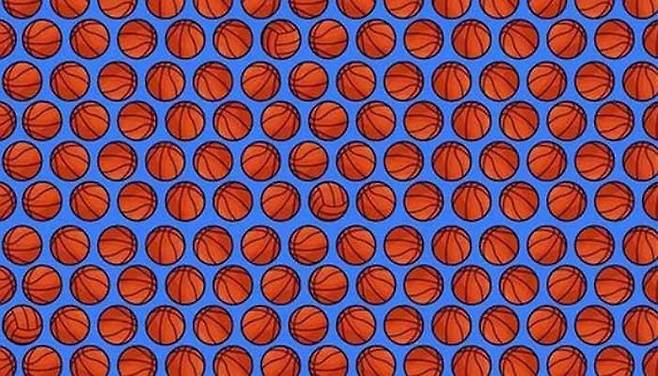 현기증이 나지 않는 범위 안에서 제시된 그림을 유심히 살펴보신 다음 농구공 사이에 숨겨져 있는 배구공 4개를 모두 찾아주시기 바랍니다.